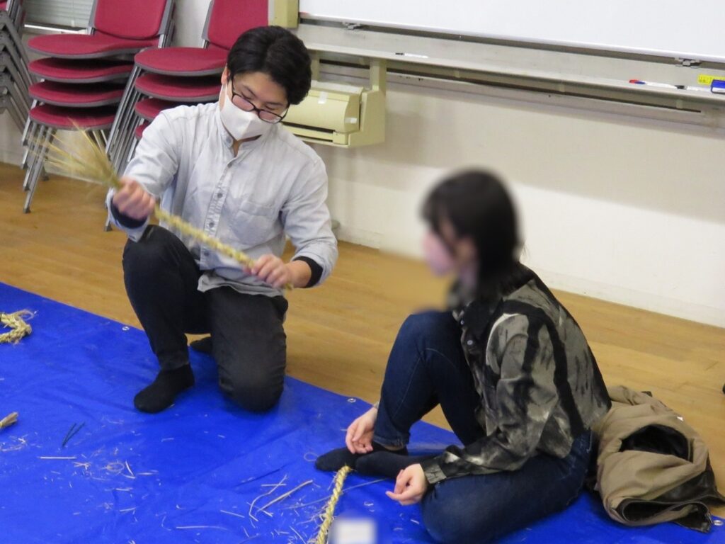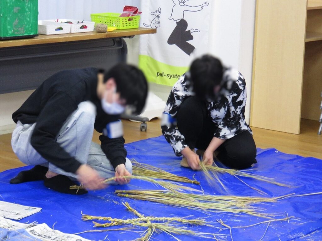午前中は、飾らないお人柄が魅力のボランティア講師をお招きし、稲わらを使ったリース作りを行いました。例年のしめ縄づくりの技術を活かしつつ、オリジナルの装飾を施したクリスマスリースが完成。会場は終始、明るい笑い声に包まれていました。