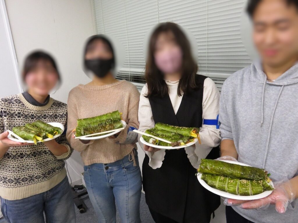 昼食には、こちらも恒例となったキンパ(韓国風海苔巻き)を手作りしました。
